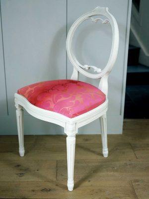 Comfortable, hand-crafted chairs and stools—tailored upholstery and painted finishes.