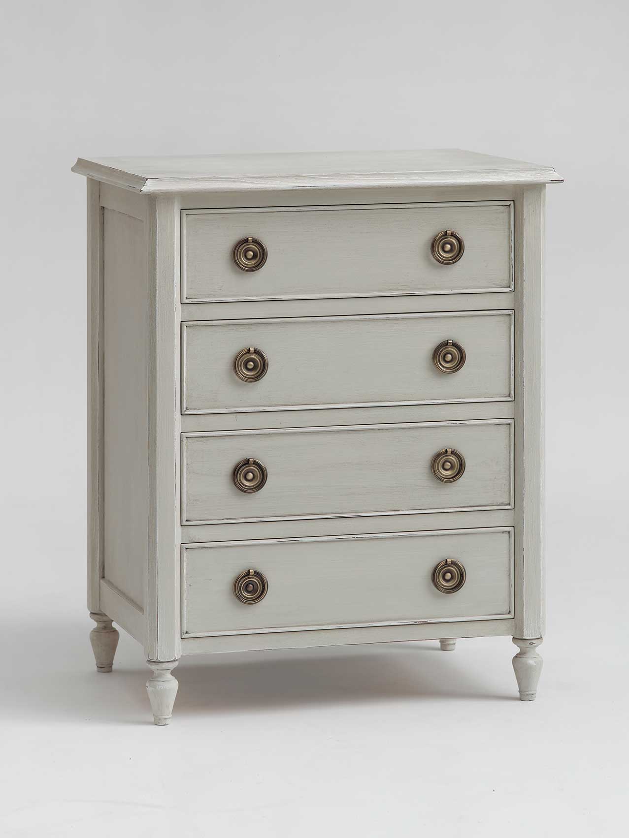 Featured here hand painted in distressed Rodin Grey, fitted with Brass Ring Handles (painted wood handles are standard)
