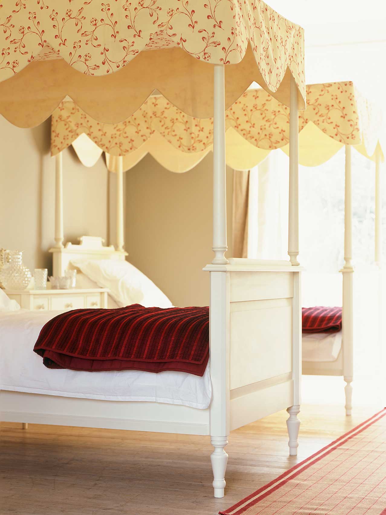 The Johann Four Post Bed has been designed to be light and airy for light weight fabrics and voiles.