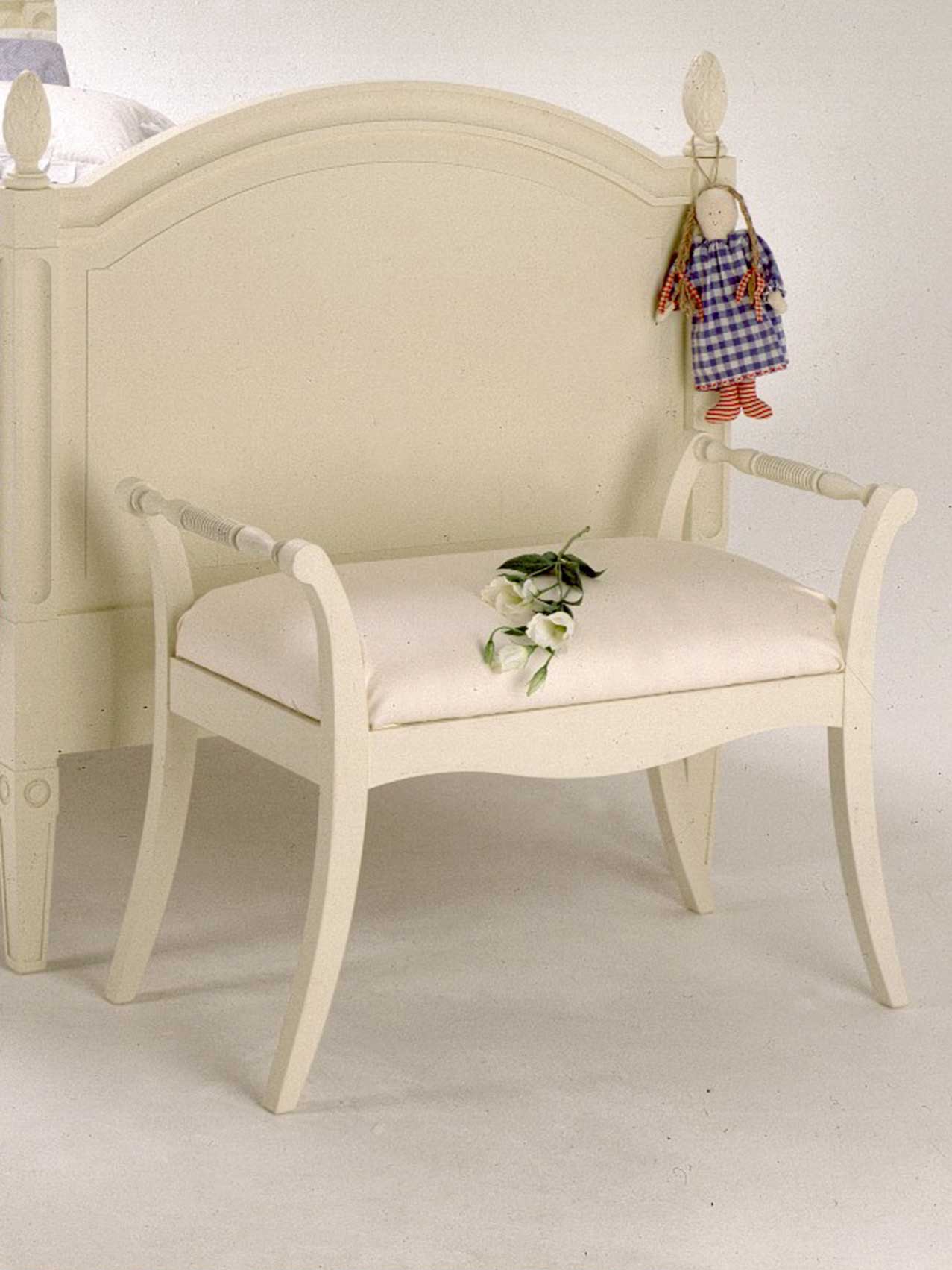 The Single Scroll Top stool is available in a range of paint colours and treatments and can be upholstered in your choice of fabric.